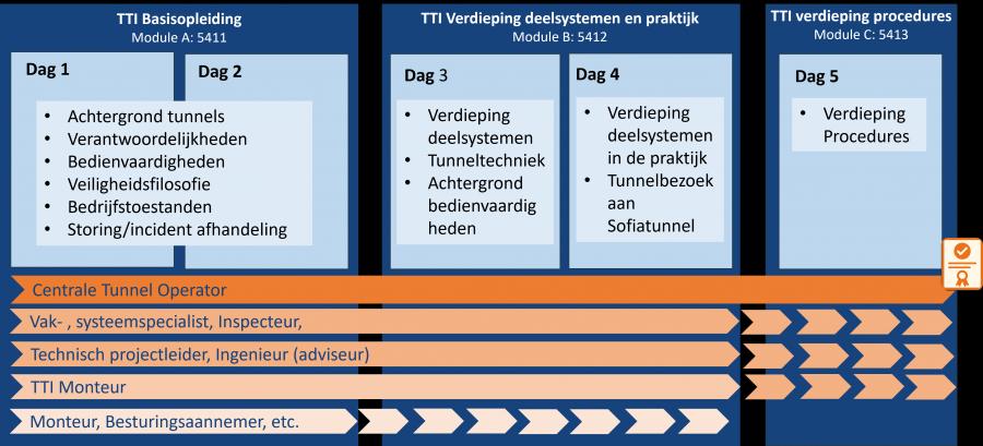 Iedereen die in zijn werk te maken heeft met tunnels in combinatie met tunnel technische installaties zoals: Centrale Tunnel Operator, Vak- en Systeemspecialist, Inspecteur, Technische Projectleider, Ingenieur (adviseur) van ingenieursbureaus, TTI monteur, monteurs, bouwmanagers, etc.